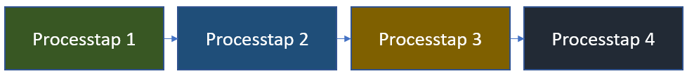 Zodra een bedrijf product of diensten begint te ontwikkelen en aan te bieden ontstaan er processen. Deze processen zien er bij elk bedrijf anders uit, maar doorgaans bestaat een flow om te komen tot een eindproduct uit meerdere processtappen. In dit voorbeeld hebben we het gemakshalve gevisualiseerd met vier processtappen: